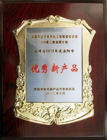 全豐集團10%萘乙酸泡騰片劑榮獲2012年度“安陽(yáng)市優(yōu) 秀新產(chǎn)品”