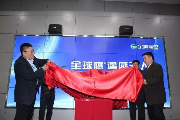 由陳學(xué)庚院士、蘭玉彬教授,王志國董事長(cháng)、黃文江研究員共同為全球鷹遙感無(wú)人機揭幕。