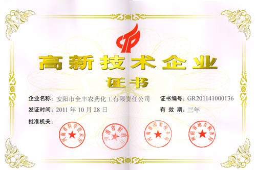 安陽(yáng)全豐農藥集團被河南省科技廳評定為“河南省高新技術(shù)企業(yè)”