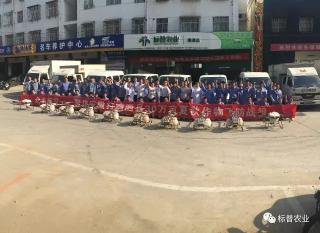 此次飛防是繼安陽(yáng)百萬(wàn)畝統防統治后的又一大規模作業(yè)。為了順利完成任務(wù),8月15日,標普農業(yè)總部飛防大隊和全國各地標普分公司飛防隊出動(dòng)全豐植保無(wú)人機120余架,飛手及助手等近300人奔赴泗縣,要和病蟲(chóng)害打一場(chǎng)徹底的殲滅戰。