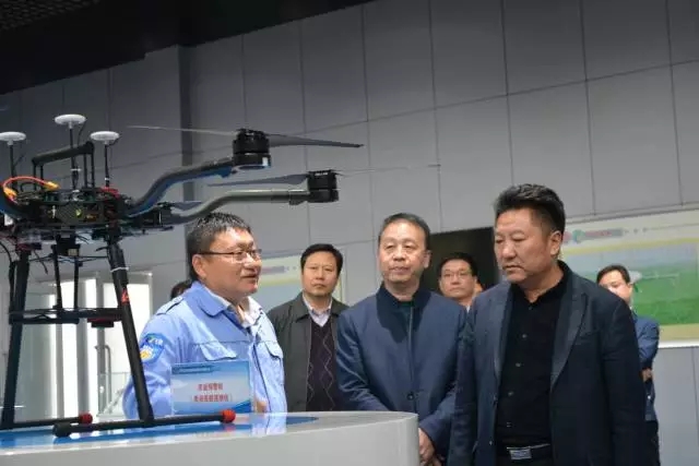 2017年10月20日上午,在黨的十九大勝利召開(kāi)之際,河南省農業(yè)廳廳長(cháng)宋虎振、副廳長(cháng)薛躍、農業(yè)廳辦公室主任楊玉甫、農業(yè)廳農經(jīng)處處長(cháng)張金龍等一行來(lái)到安陽(yáng)全豐航空專(zhuān)題調研無(wú)人機產(chǎn)業(yè)發(fā)展狀況。安陽(yáng)市副市長(cháng)劉建發(fā)、市農牧局局長(cháng)馬天福、副局長(cháng)朱麗英、農牧局農經(jīng)站站長(cháng)李洪民陪同調研。北關(guān)區區委書(shū)記程利軍向省農業(yè)廳領(lǐng)導匯報了無(wú)人機產(chǎn)業(yè)園、無(wú)人機試飛場(chǎng)等項目進(jìn)展情況。