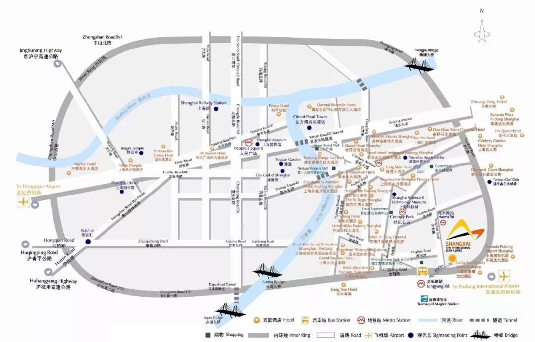 展館位于浦東國際機場(chǎng)和虹橋機場(chǎng)之間,東距浦東國際機場(chǎng)35公里,西距虹橋國際機場(chǎng)32公里,可乘坐機場(chǎng)巴士、磁懸浮列車(chē)或軌道交通線(xiàn)路直達展館。
